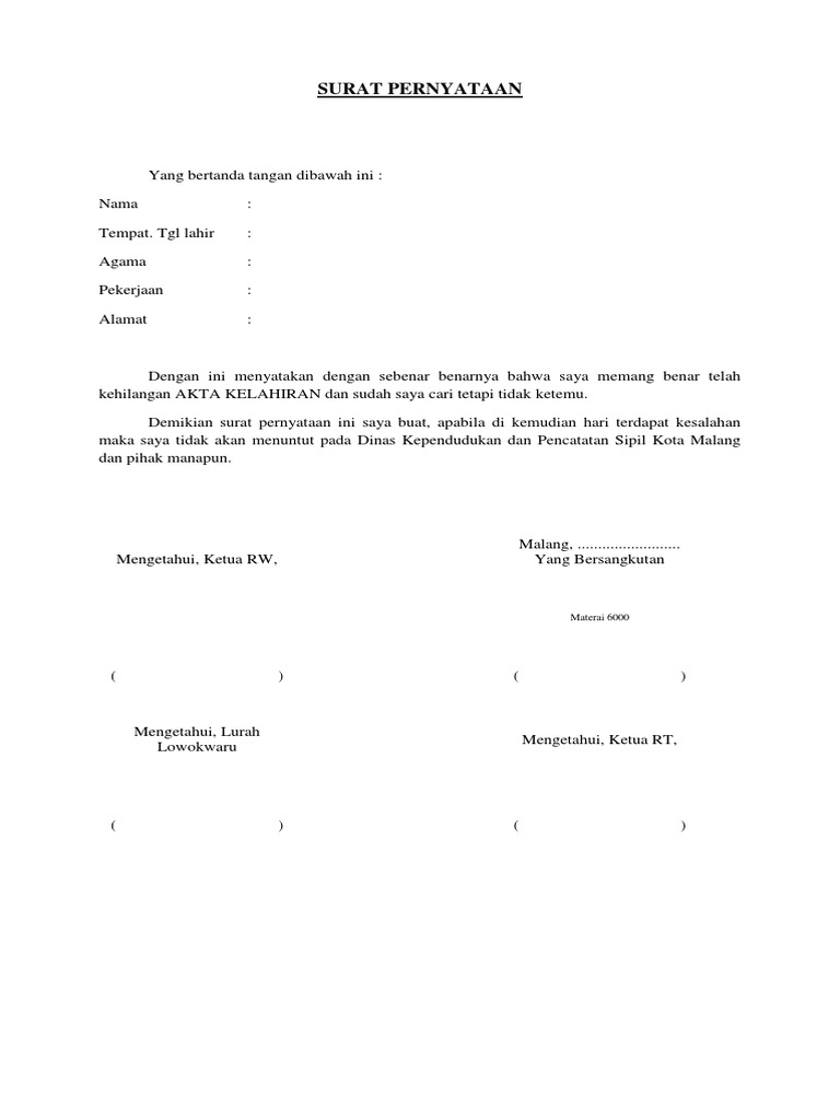 Contoh surat pernyataan kehilangan doc. Surat pernyataan kehilangan ini saya buat pada hari senin tanggal 19 april 2017 bertempat di rumah saya. Contoh surat pernyataan kehilangan kehilangan sebuah surat atau dokumen penting memang sering terjadi. Karena surat pernyataan kehilangan juga termasuk ke dalam surat resmi, maka anda harus menggunakan bahasa resmi atau baku yang memang sudah sesuai dengan eyd. Contoh surat pernyataan kehilangan untuk dokumen faktur. 6 di bandung mengingat telah terjadinya kesalahan pengisian blanko ijazah sma : Atas kerja samanya saya ucapkan terima kasih. Anda juga bisa menjelajah galeri gambar contoh surat pernyataan kehilangan boarding pass yang kami telah siapkan untuk mencari gambar yang anda cari. Surat pernyataan kehilangan dokumen asli. Simpan simpan surat pernyataan kehilangan dokumen asli untuk nanti. Contoh surat pernyataan kehilangan berikut ini anda bisa lansung copypaste contoh surat pernyataan kehilangan stnk, bpkb, sim ini untuk kelengkapan 32 full pdfs related to this paper. A short summary of this paper.